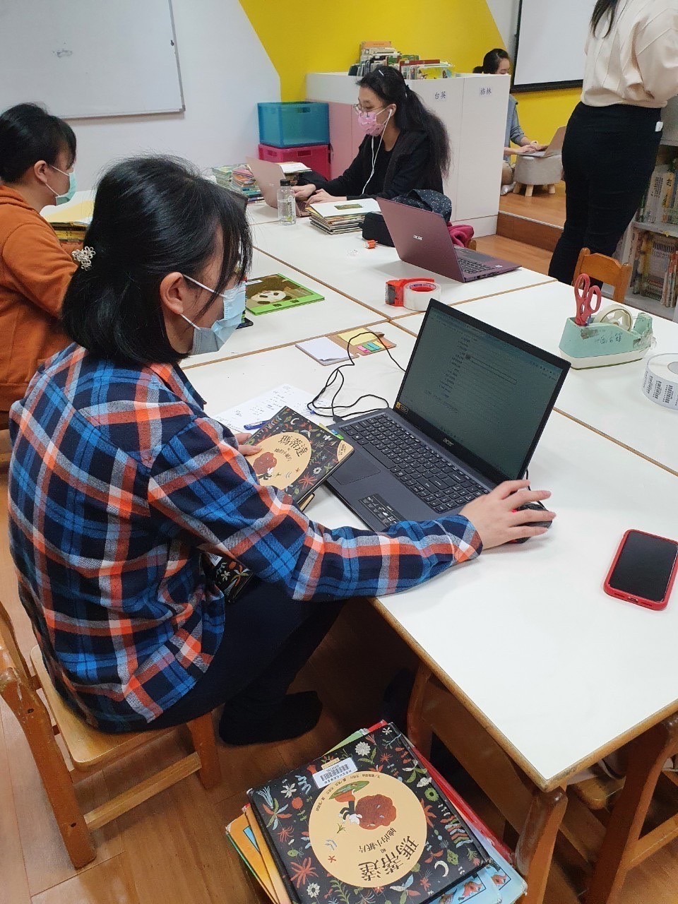 至社區協助幼兒園圖書館進行圖書編目。此次與同行
