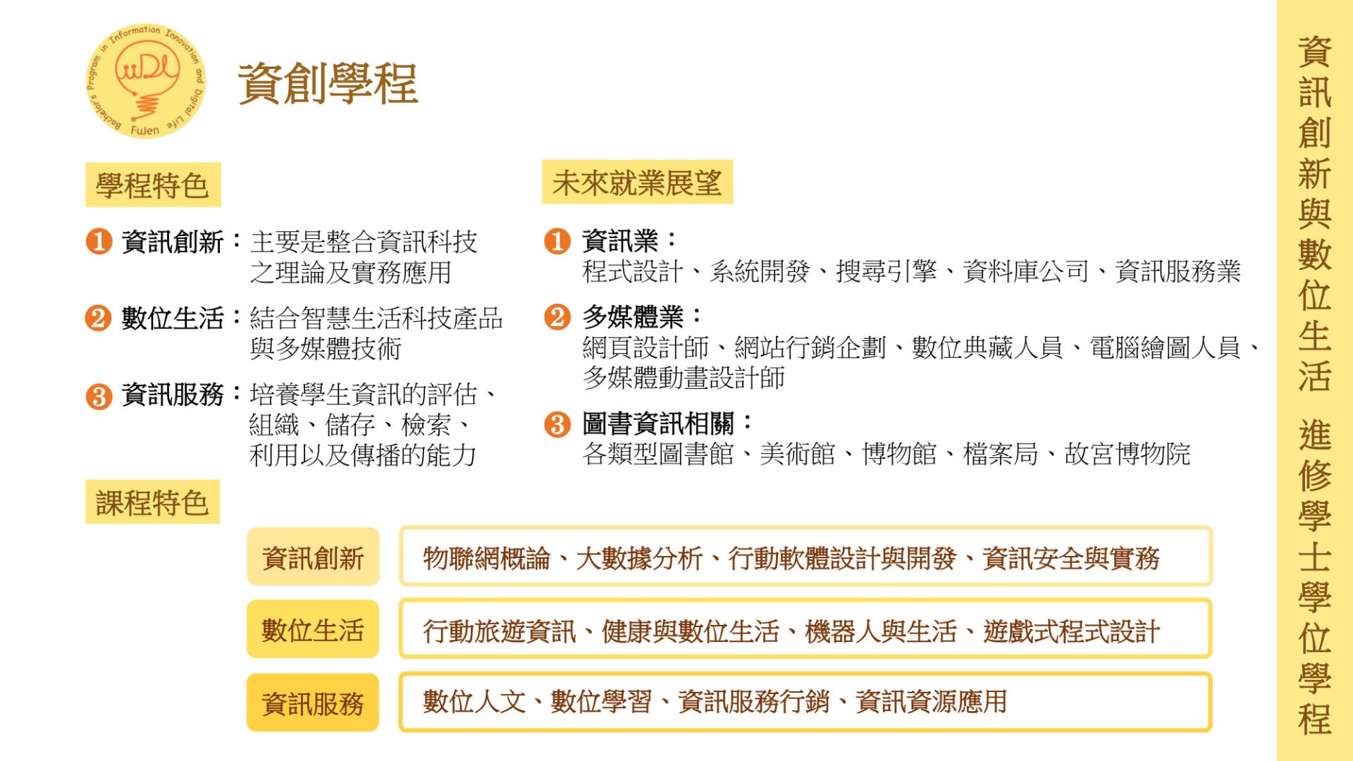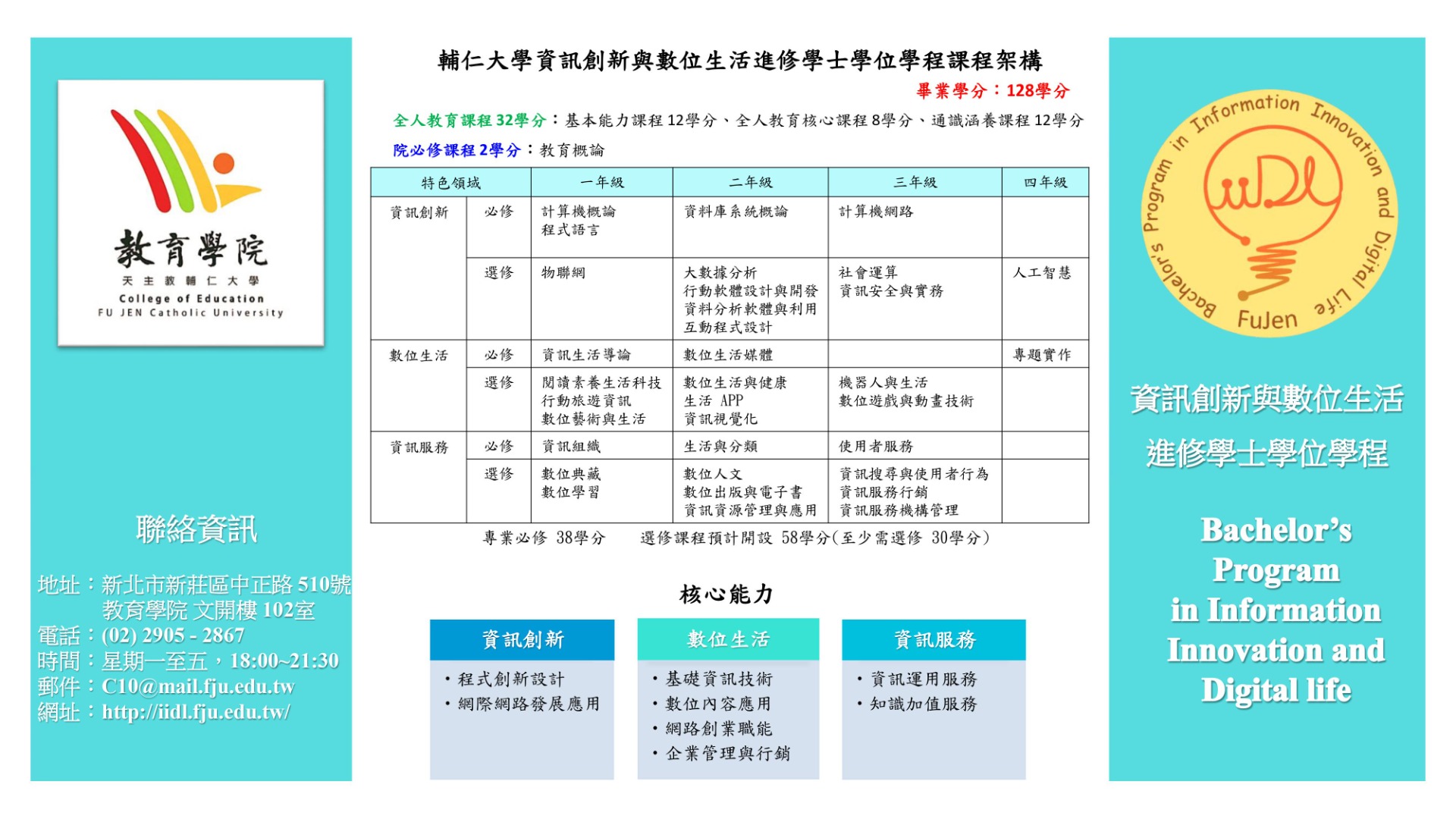 輔仁大學資訊創新與數位生活進修學士學位學程宣傳四折頁