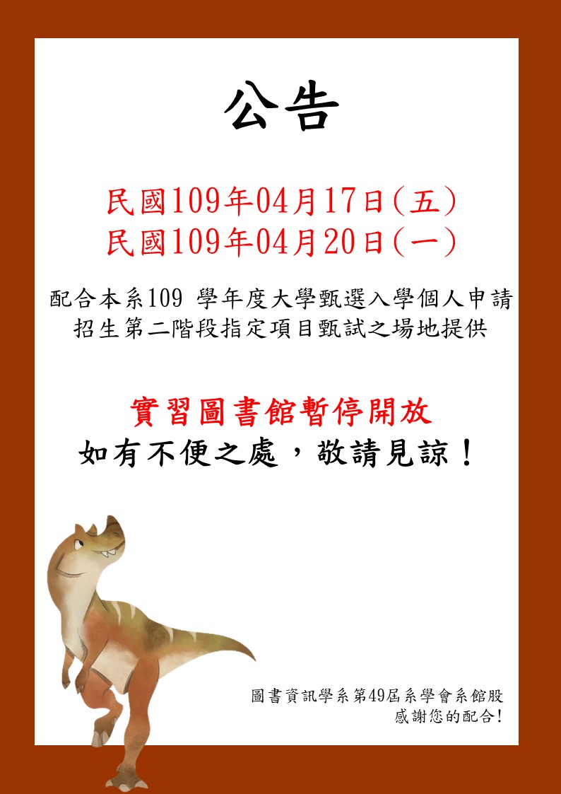輔仁大學圖書資訊學系實習圖書館公告